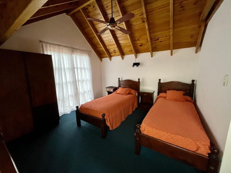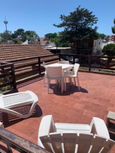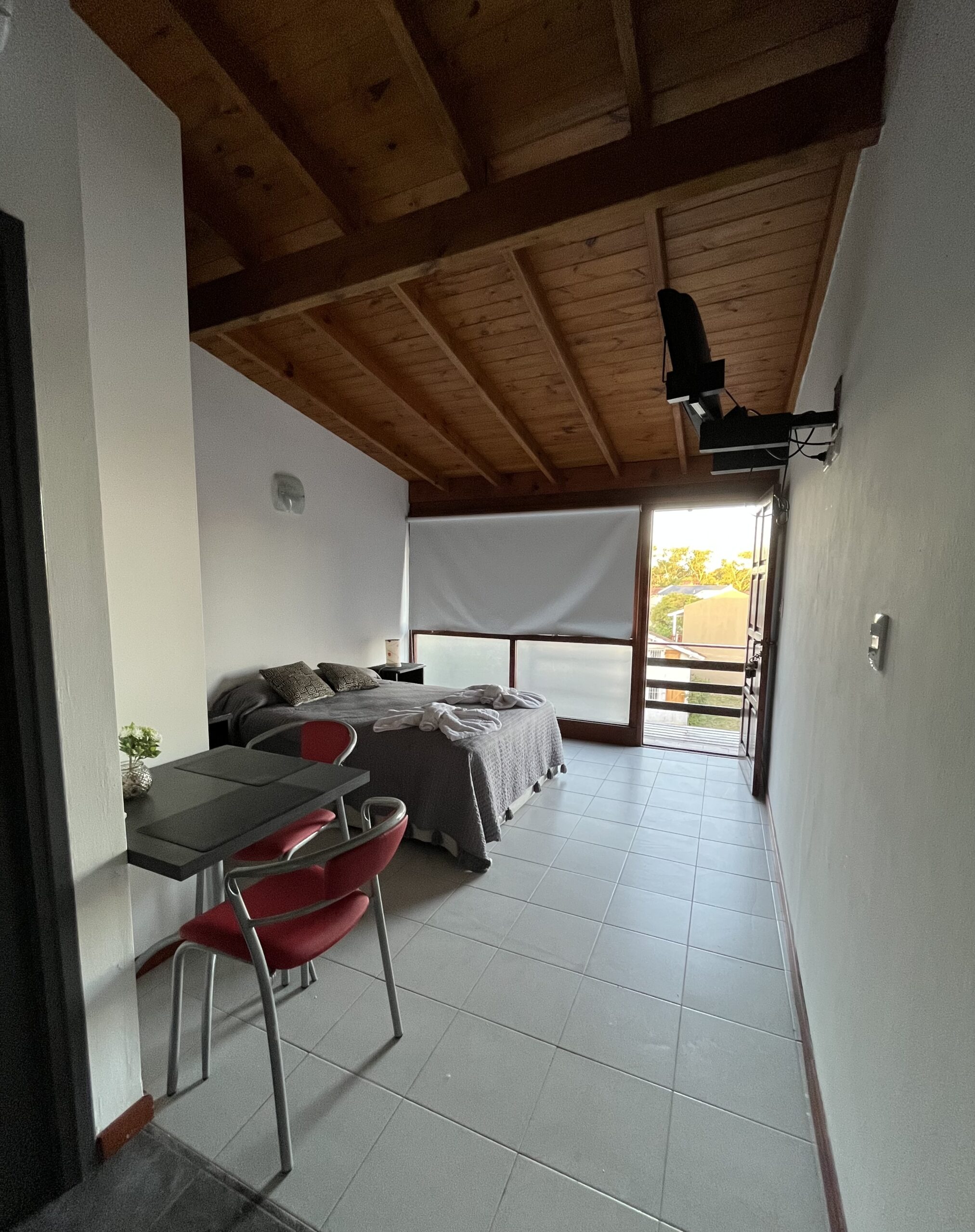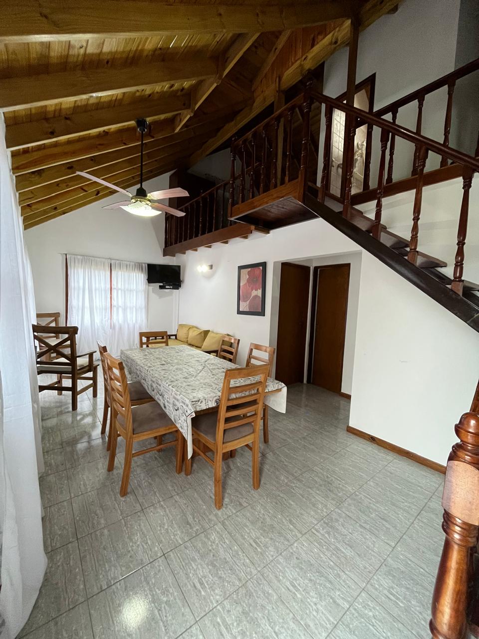 Duplex, ubicado en primer piso por escalera. Cuenta con una planta baja donde observamos el living comedor, dormitorio con sommier matrimonial, baño y cocina completa. En la planta alta 3 camas individuales y otro baño mas. Esto se comunica tipo loft con el living.